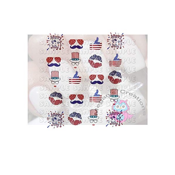 July The 4th Fun Red White & Blue Waterslide Nail Decals/Nail Art