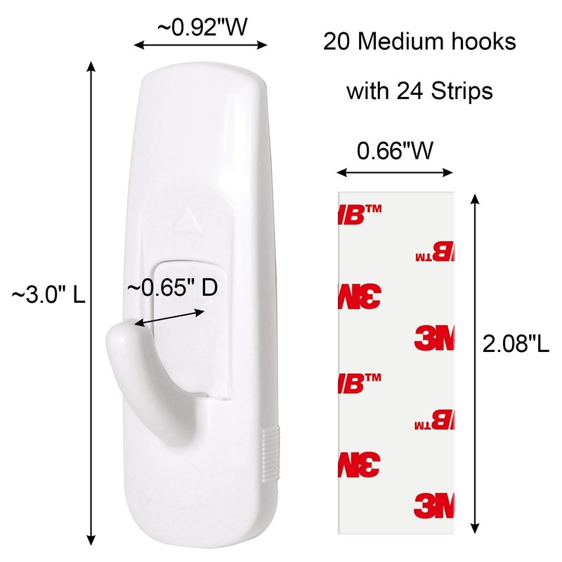- Up to 4 pounds: Medium sized 20 heavy-duty hooks with 24 straps, capable of supporting up to 4 pounds