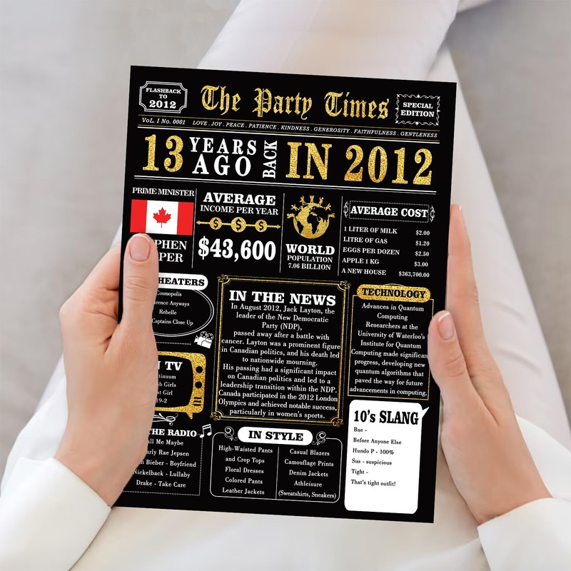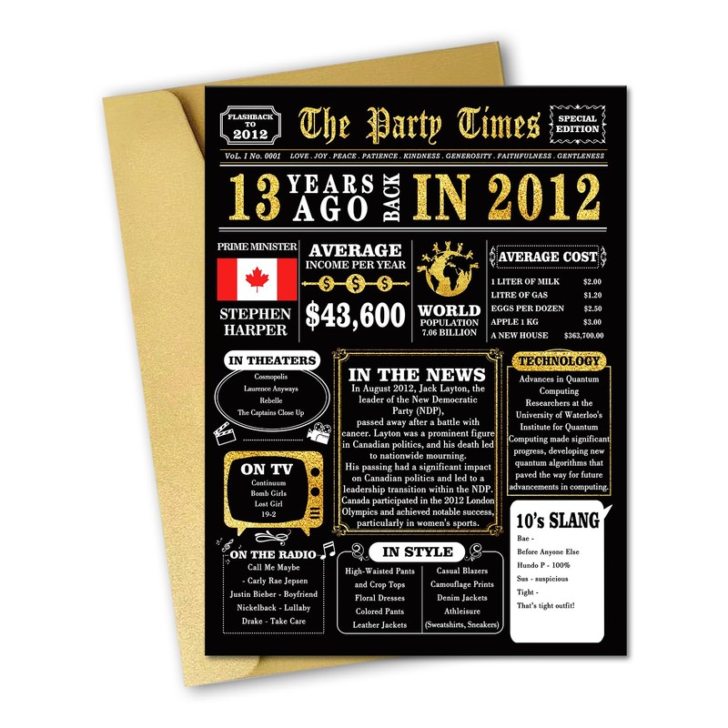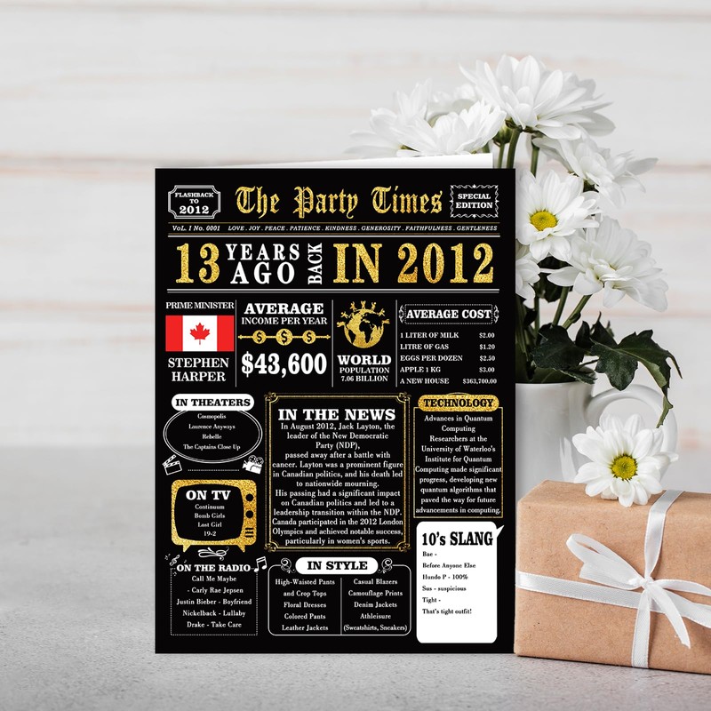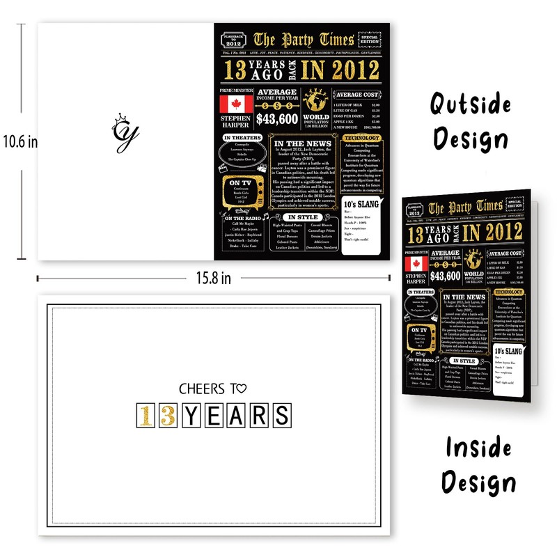 - PERFECT GIFT IDEA -Find interesting 13th birthday cards for your kids. The cards contain some specific events in 13 years ago, which can help you review interesting events with family and friends.