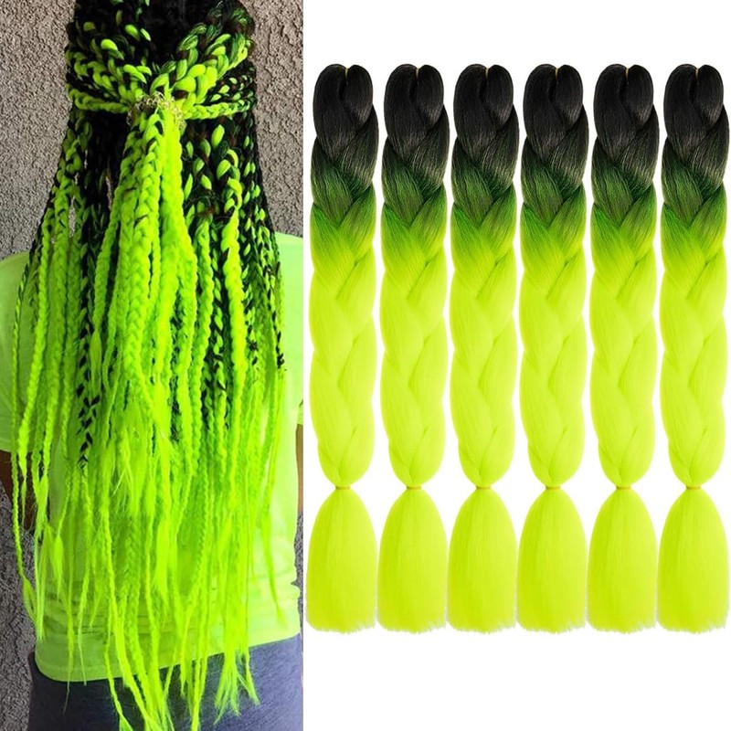 Jumbo Box Braiding Hair Extensions 24 Inch Black to Yellow Green High Temperature Synthetic Fiber 6 pcs Ombre Colored Braiding Hair Twist Crochet Braids for Black Women(24",B13)