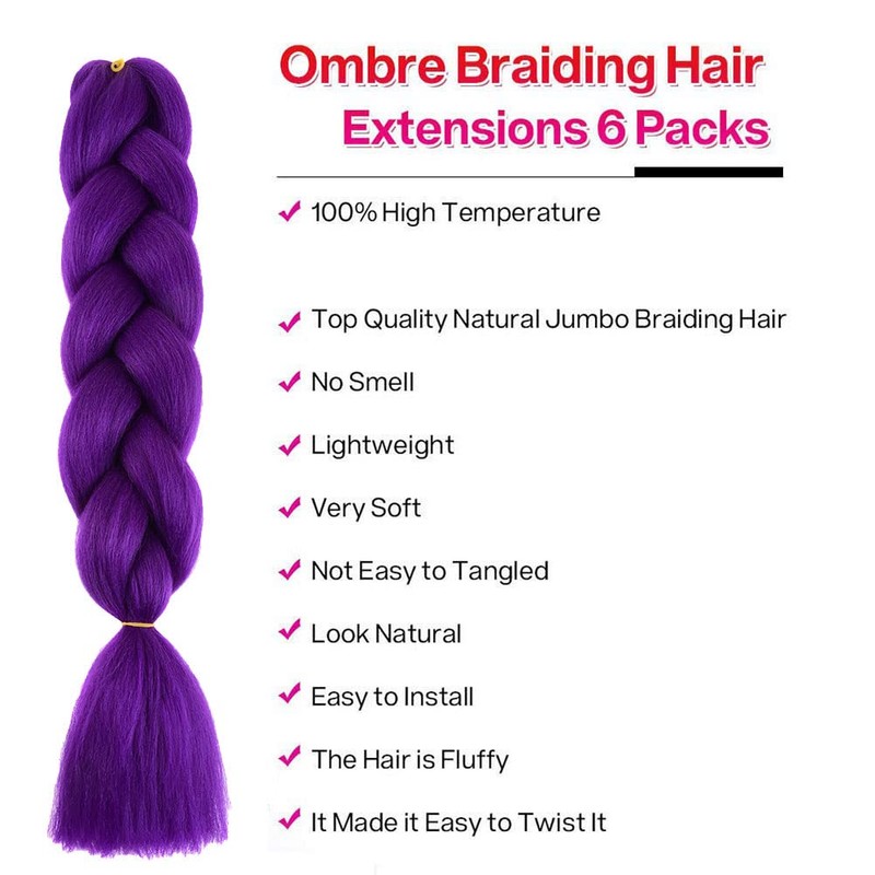 Jumbo Braiding Hair Extensions, Colourful Synthetic Hair, Heat Resistant Hair, for DIY, Crochet Box Braids, Ombre Purple 100 g/pcs, 60 cm / 23.62 inches