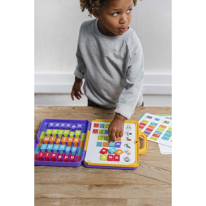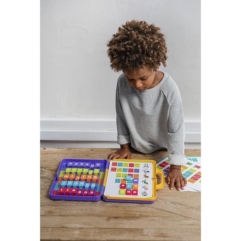 - 15 themed cards with 90 exercises, and 90 plastic plug-in tiles.