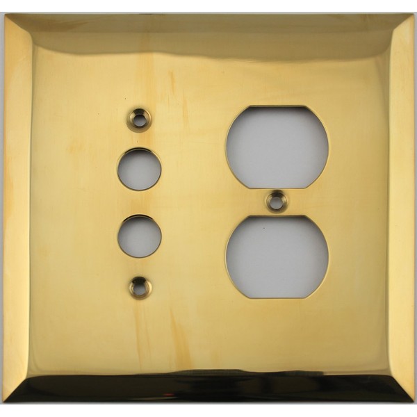 Jumbo Stamped Unlacquered Brass Two Gang Combo Wall Plate - One Push Button Light Switch One Duplex Outlet