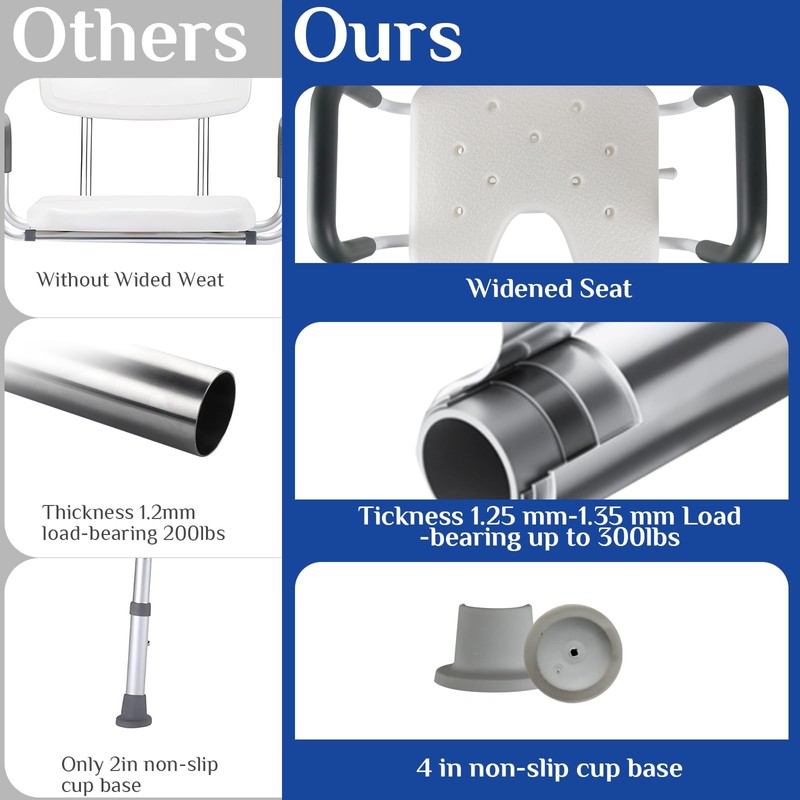 - ✔️【Safe & Secure】 : shower chair for inside shower has non-slip suction cups on its legs. Wider shower seat, memory foam armrests soft and thick. Integrated backrest reduces user fatigue. Suitable for all types of people, buy for the home elderly pregnant women and so on are a good choice. shower seat.