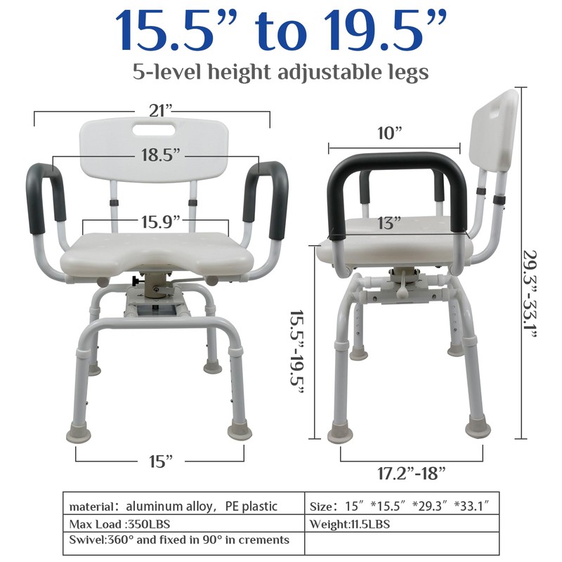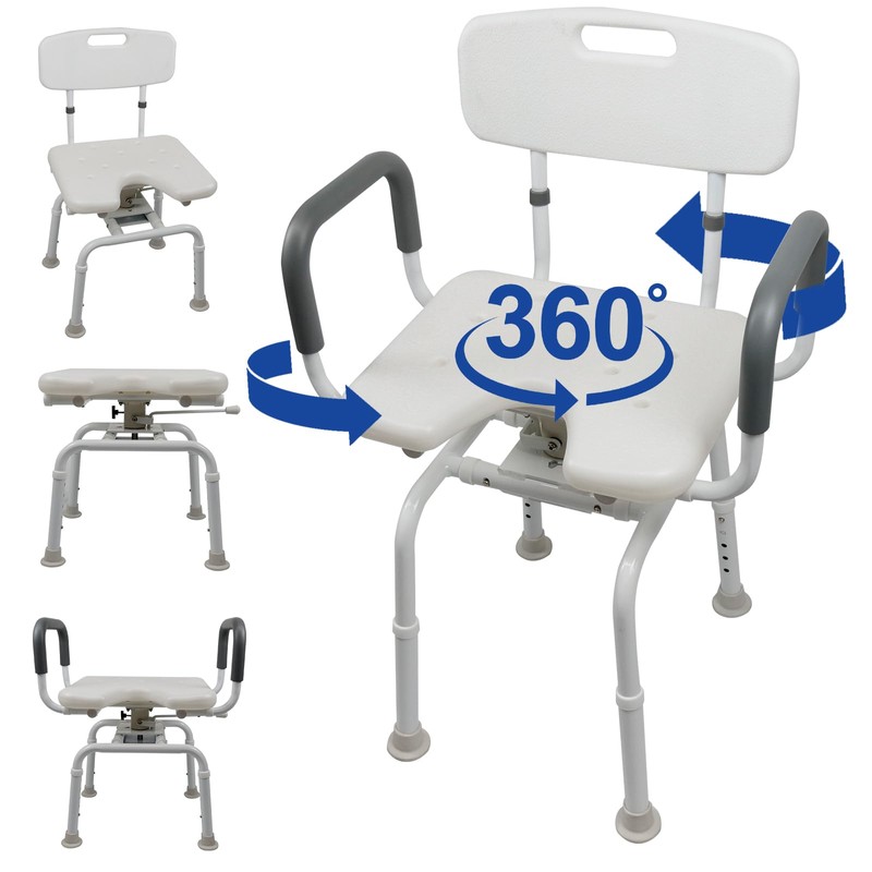 - ✔️【360° Swivel & Stopper】 - This heavy duty swivel shower chair rotates 360 degrees in 90-degree increments, with a locking pin to keep it still. Easy transfer in and out of a tub.