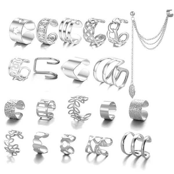 Jumcew 20Pcs Ear Cuff Earrings for Women Men Non Piercing Ear Clip Fake Earrings Cartilage Ear Cuffs(Silver)