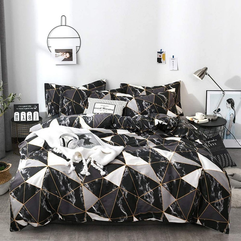 - WHAT YOU CAN GET: Responsive and nice customer service will be waiting for you 7*24 hours, no matter what your question is, please email us at any time. Every buyer who contacted us got a satisfactory solution, so please order our black grey marble comforter king confidently.