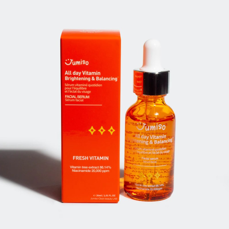 El JUMISO All Day Vitamin Facial Serum es un suero facial coreano formulado con una potente combinación de vitaminas A, B, D, E, K y C, diseñadas para iluminar, equilibrar y revitalizar la piel.