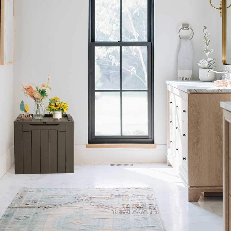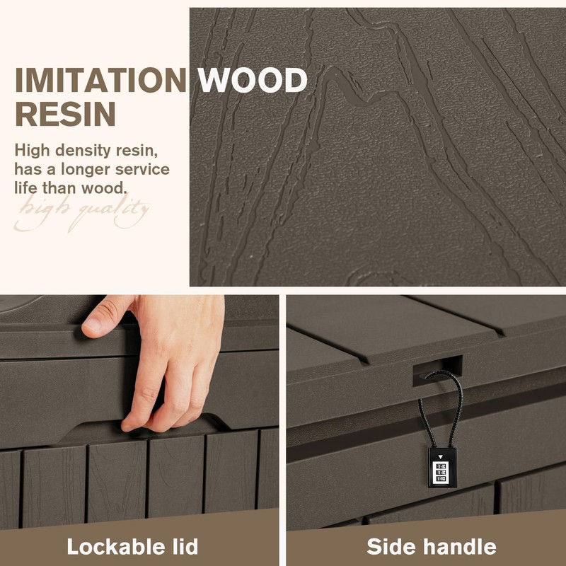 JUMMICO 31 Gallon Resin Deck Box Waterproof Indoor Outdoor Storage Boxes for Patio Furniture Cushions and Garden Tools (Brown)