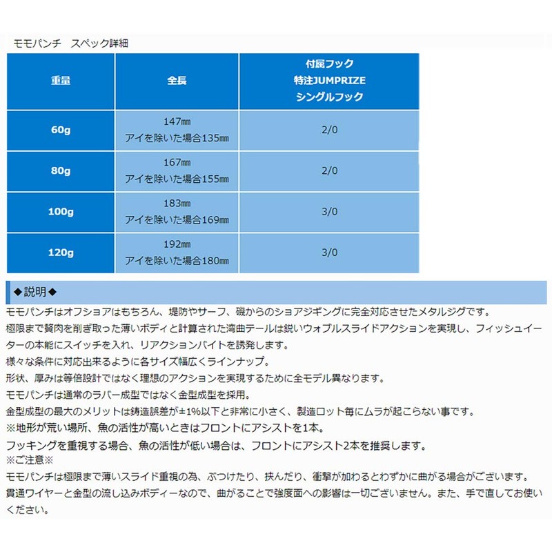 - Attachment Hook: Custom Jump Rise Assist Hook #2/0 (22.0 lbs (10 kg) for Blue Models)