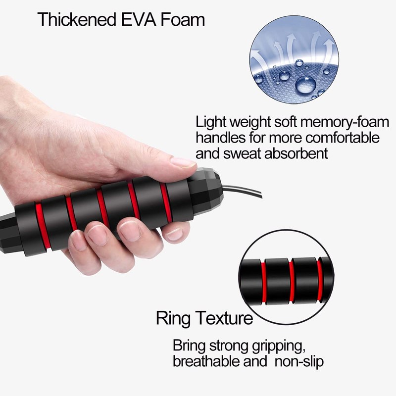 - Breathable and comfortable EVA memory foam handles, Ergonomically designed 6.14 Inch length handles, make the jumping rope easy to hold and carry.