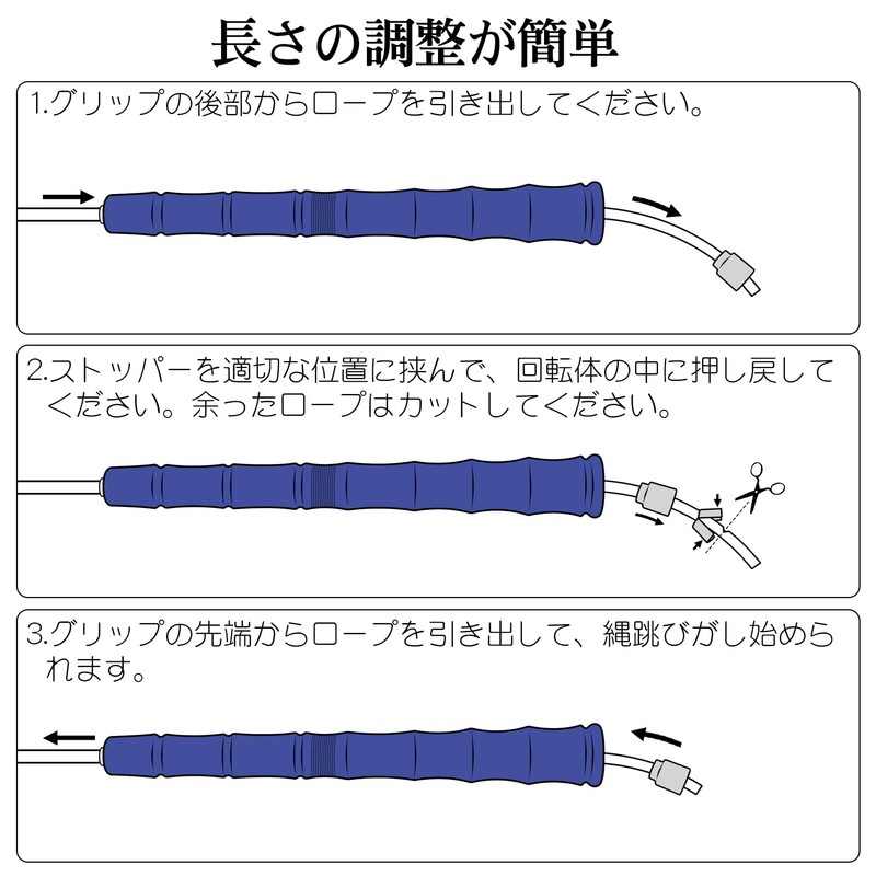 - Dimensions: Rope length 10.9 inches (280 cm), Diameter 0.2 inches (4 mm), Grip length 8.0 inches (20.3 cm)