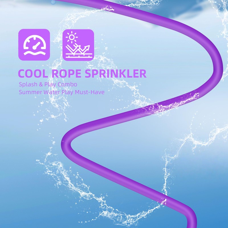 While our sprinkler delivers consistent, refreshing sprays right out of the box, its performance harmonizes with your garden hose's natural water pressure—allowing families to customize play intensity simply by adjusting their faucet flow. The sprinkler rope features 6 water jet clusters. The sprinkler rope has 6 sets of water holes spaced 16.5 inch apart. Each set includes two holes: one smaller (1mm) and one larger (2mm). The water holes and quick-connect waterproof fittings ensure leak-resistant operation across varying water pressures for long-term reliability. Engineered for group excitement yet adaptable for solo adventures: Shorten the rope section when space is limited or fewer players join the fun. Our weather-ready PVC construction resists kinks and weathering through daily summer use, folding compactly to fit balcony storage or beach bags.