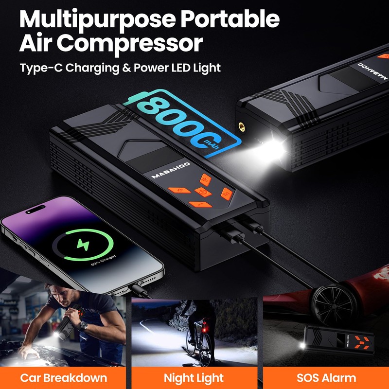 Jump Starter with Air Compressor, 3000A Car Jumper Starter Portable Battery Pack with 150PSI Tire Inflator, 12V Jump Box for Car Charger Battery Booster with LCD Display (Up 9L Gas/8L Diesel Engine)