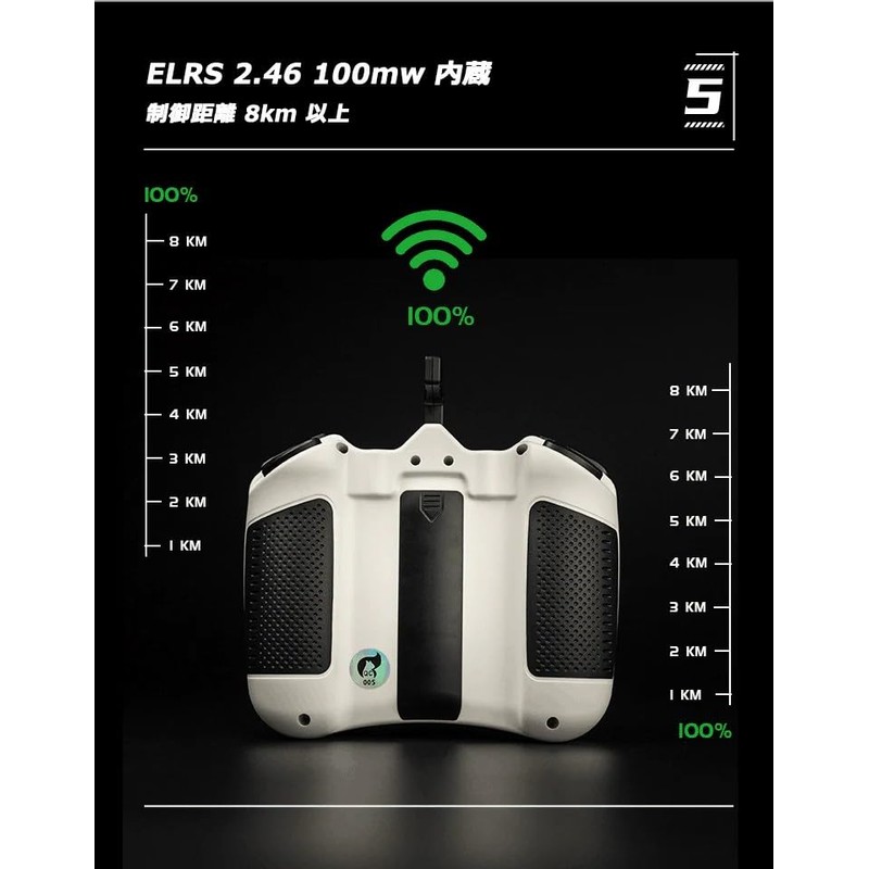 - Built-in domestic certified ELRS module, maximum output power is 100 mW. ELRS aims to achieve the best possible link performance in speed, delay and range. This makes it one of the fastest RC links available while providing long distance performance