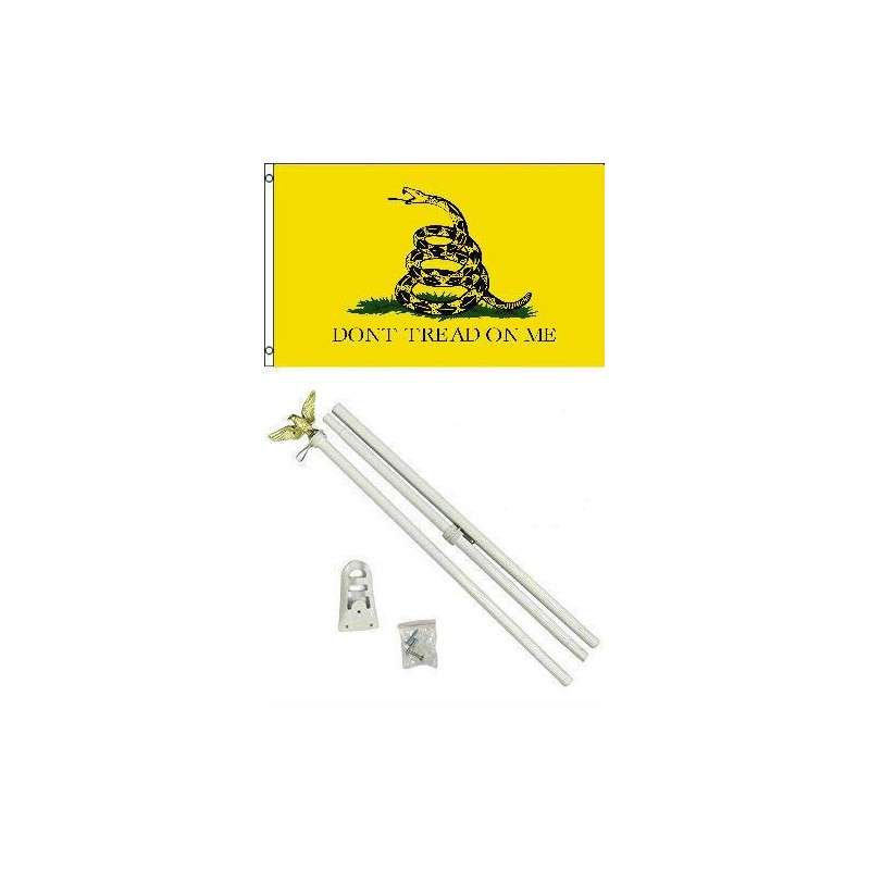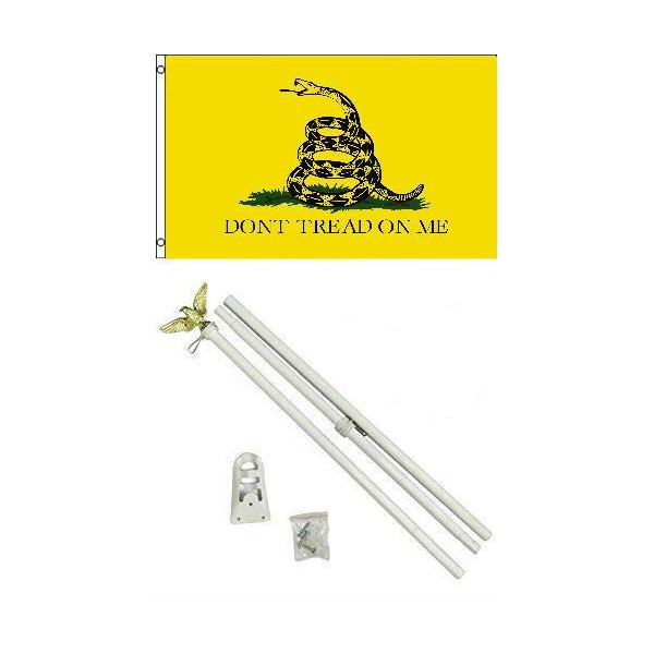 - 2x3 2x3 Gadsden Yellow Snake Dont Tread On Me Flag White Pole Kit Set