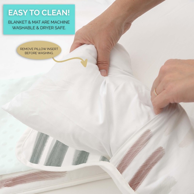 - Easy to Clean - Our kindergarten nap mat features a removable pillow for easy machine washing. The daycare sleeping mats are machine washable on cold and can be tumble dried on low. Remove pillow insert before washing.