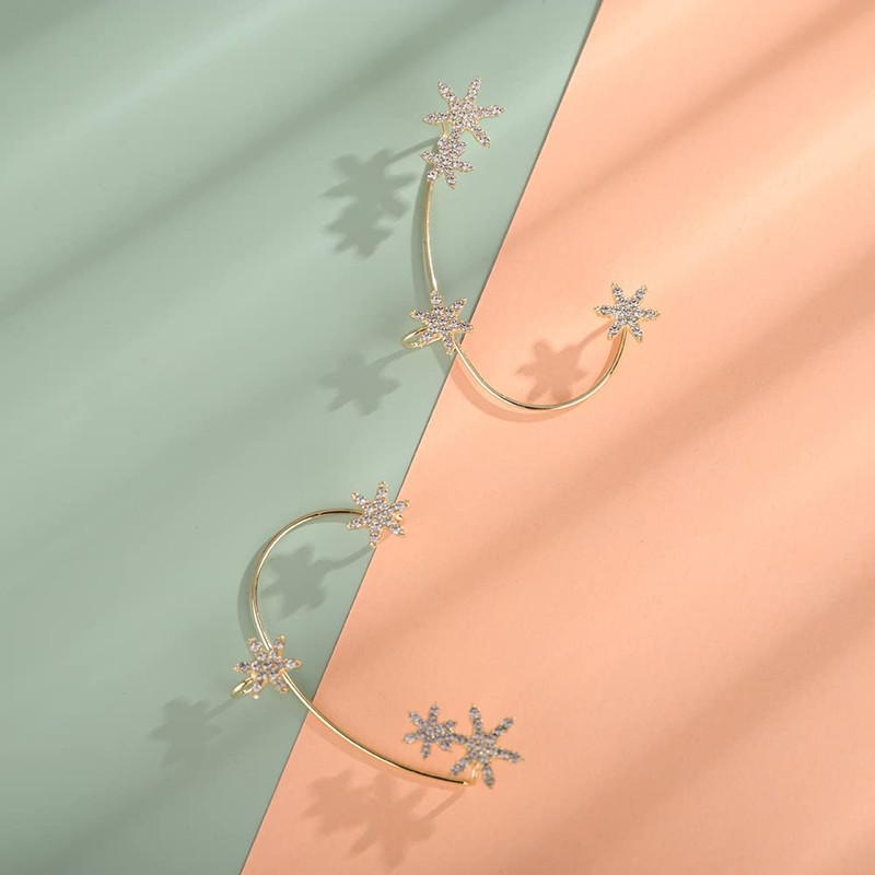 - Sparkling earrings are covered with rhinestone. The ear cuff contains four cute snowflakes design.