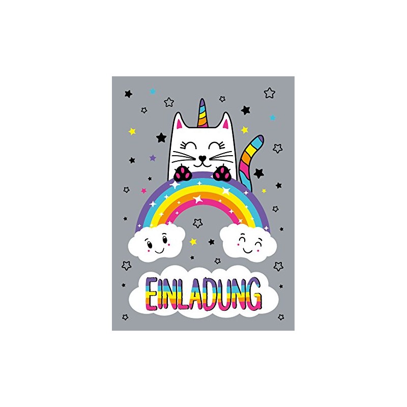 JuNa-Experten 12 Invitation Cards Cat Unicorn Children's Birthday Girl Unicorn Birthday Invitations Birthday Party Card Set