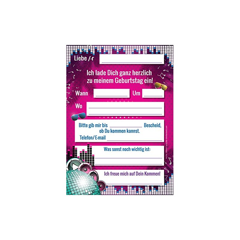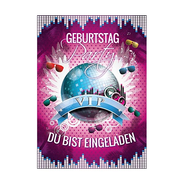 JuNa-Experten 6 Invitation Cards Birthday VIP Invitations Disco Party Adults Children Girls Boys Children's Birthday Invitations Card Set