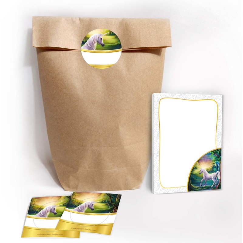 JuNa-Experts Mini Notepads + Gift Bags + Stickers Unicorn Party Bag Guest Gift for Birthday Children's Birthday Christening Girls Wedding