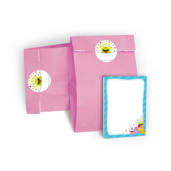 JuNa-Experts Notepads + Gift Bags / Purple + Stickers Funny Monster Party Bag Guest Gift for Birthday Children's Birthday Wedding Christening Girls