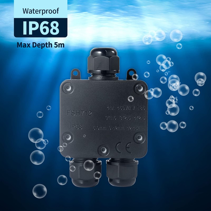 - Junction box waterproof IP68: IP68 junction box waterproof, dustproof function, high-quality waterproof flame-retardant PC material, which is fireproof, shockproof function, waterproof silicone seal, UV sun protection and rain protection, these functions make sure it can be used under the sun or on rainy days. Dustproof and shockproof, durable and not easy to break.