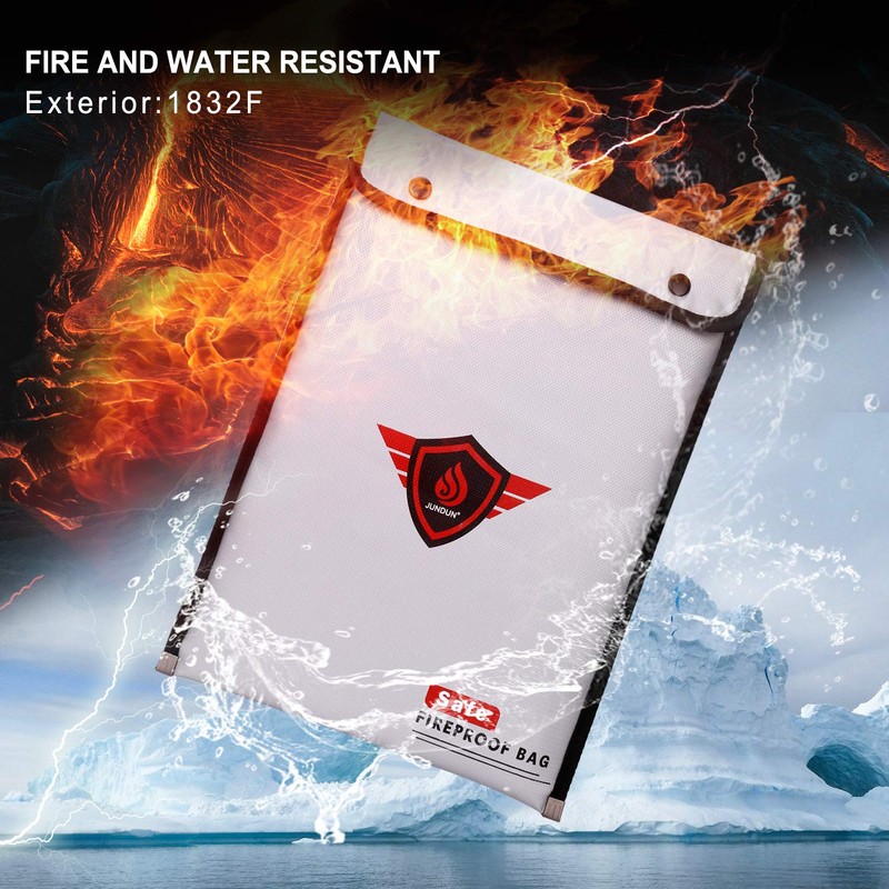 JUNDUN Fireproof Document Bags,15”x11” Triple Layers Waterproof and Fireproof...