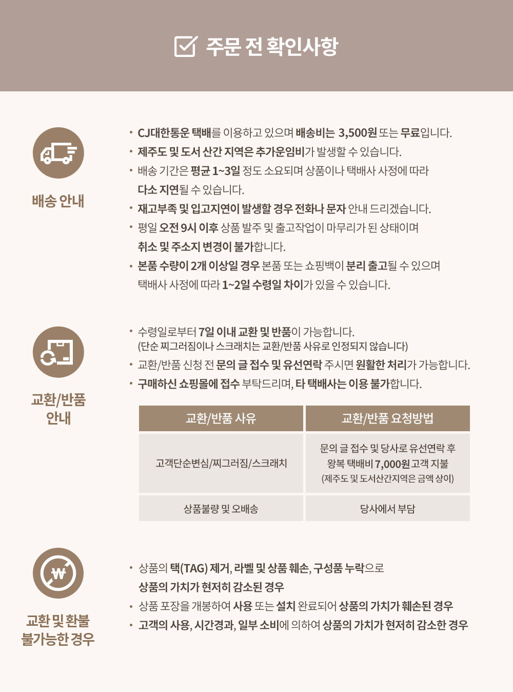 Please read our policy carefully before making a purchase.