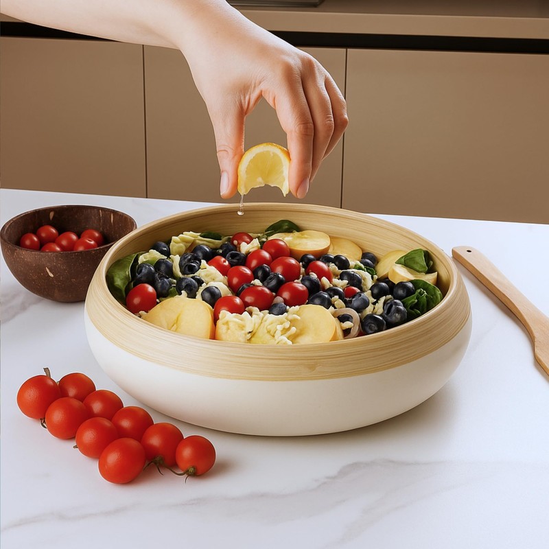 - ⭐️ THREE NATURAL FINISHES TO MATCH ANY INTERIOR: Choose from Natural Bamboo, Dark Bamboo, or White to suit your space. Each finish highlights the natural grain of the bamboo, making every bowl unique – ideal for rustic, boho, modern, or Scandinavian-style kitchens.