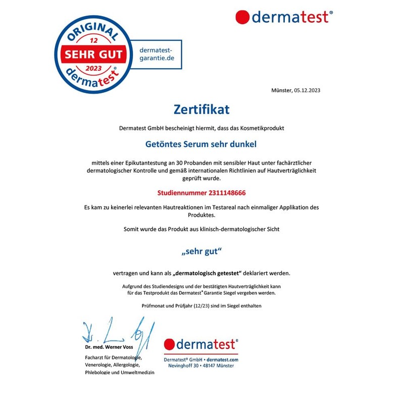 - Compatibility: All our products are explicitly tested by Dermatest on sensitive skin and bear the "Very Good" award. We deliberately do not use irritating preservatives, drying surfactants, drying alcohols and PEGs. This allows us to provide appropriate care for every skin need, even with allergic skin.
