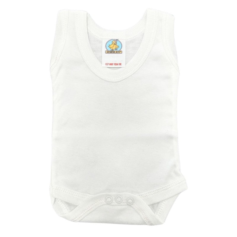 Junior Joy 3-6 Months Baby Bodysuits, 100% Cotton, Soft & Durable, Round Neck, No Sleeves, Popper Fastening for Easy Nappy Change, Pack of 2