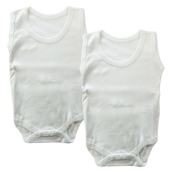 Junior Joy Newborn Baby Bodysuits, 100% Combed Cotton, Super Soft, Round Neck, No Sleeves, Popper Fastening for Easy Nappy Change, Machine Washable, Pack of 2