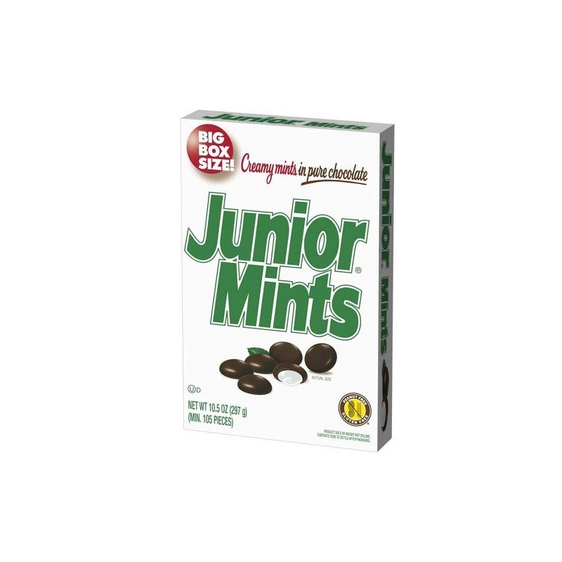 ¿Qué podría ser mejor que un bocado de Junior Mints... tiernos botanas de menta cremosa rodeados de una capa de chocolate negro decente? Una caja de tamaño grande de Junior Mints, por supuesto. ¿Tomar un largo viaje por carretera o binge viendo toda una serie en Netflix? Ahora puedes aplastar cualquier antojo de caramelo sin el miedo de quedarte sin tiempo pronto... con este gran suministro de mentas Junior, mentas cremosas en chocolate puro.