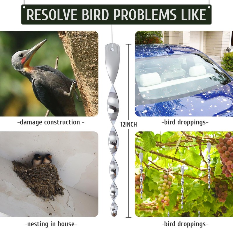 JUNIQUTE Bird Wind Twisting Scare Rods Reflective Ornamental Spiral Device (12") (Set of 12)