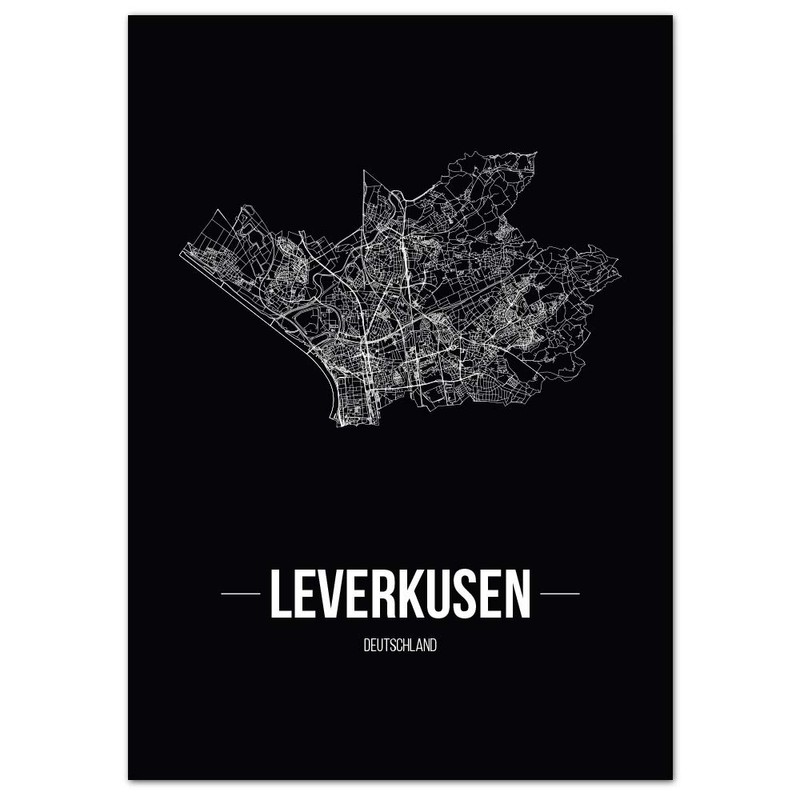 - Stadtposter Leverkusen in der von Ihnen gewählten Größe & Schriftart