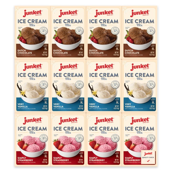 Junket Ice Cream Mix Bundle - 4 Vanilla, 4 Chocolate, 4 Strawberry (12 Total)