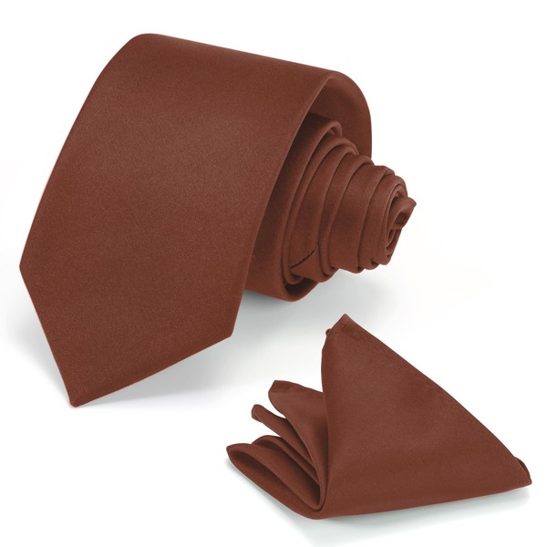 Junmaxroad Mens Tie Set Solid Color 3.15" (8CM) Rust Formal Necktie and Pocket Square Set in Gift Box