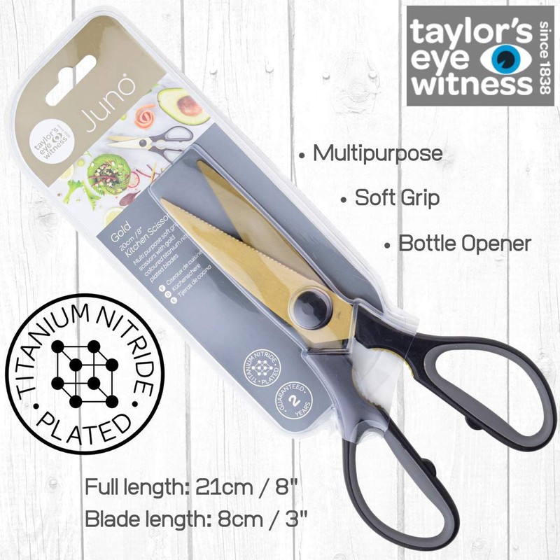 - ✅ MATCHING SET: If you like the look, feel and quality of this carefully crafted pair of scissors, you’ll be pleased to know that they are part of a matching kitchen set. Just type in Taylors Eye Witness to see the full Juno range of matching knives.