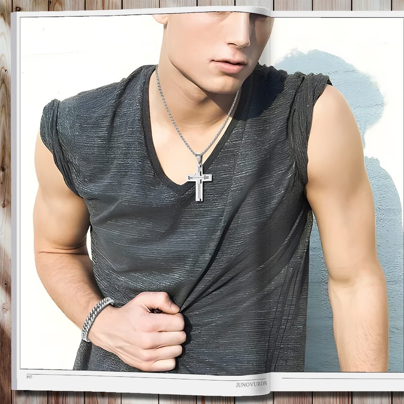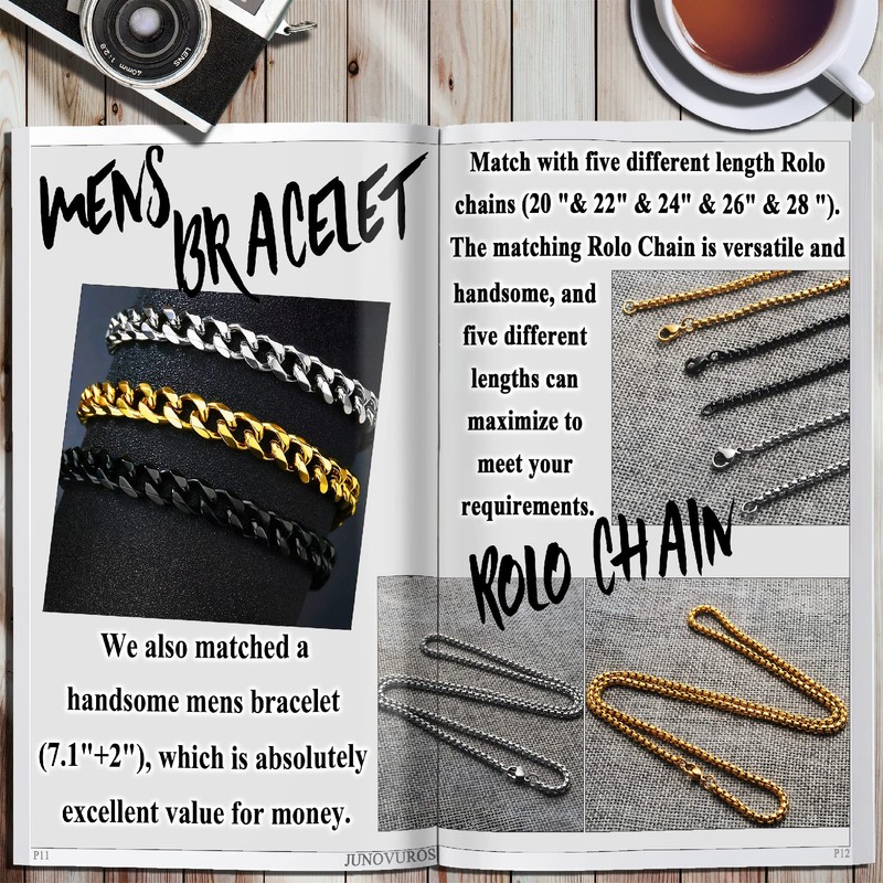 - Jewelry Match: Get the best value with our set of 7 pieces, including a cross pendant and 5 different Rolo chains (20-28 inches) that can be mixed and matched to suit your style. Plus, a handsome men's bracelet is included for added value