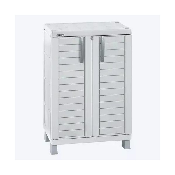 Armario Mediano con 2 entrepaños ajustables que resisten hasta 25 Kg cada uno. Fácil de armar, mover y limpiar. Con la resistencia y beneficios del plástico. Excelente capacidad interior, con orificio para uso de candado para mayor seguridad. De apariencia moderna y elegante. Ideal para interiores y exteriores.