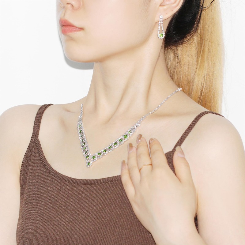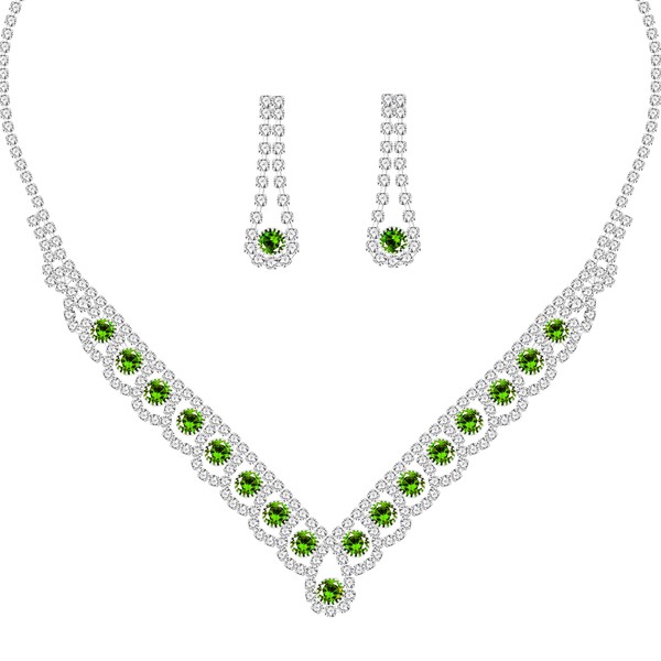 JunyiDIY Elegant Green Crystal Necklace Earrings Set | Zircon Chain with Sparkling Green Gemstone Pendant | Bridal Wedding Party Jewelry for Women