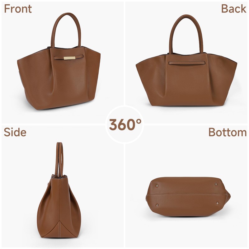 - 【UNIQUE LUXURY DESIGN】 Designed with a gold belted detail, this tote handbag features triangular folds and metal feet on both sides of the base. The luxury finish makes it the unique everyday bag.