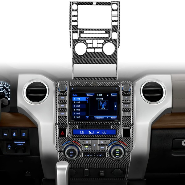 JUPIZEUS Carbon Fiber, Compatible with Toyota, Center Control Navigation Screen Panel Sticker for Toyota Tundra 2014 2015 2016 2017 2018 2019 (Type B - 2knobs, Black)