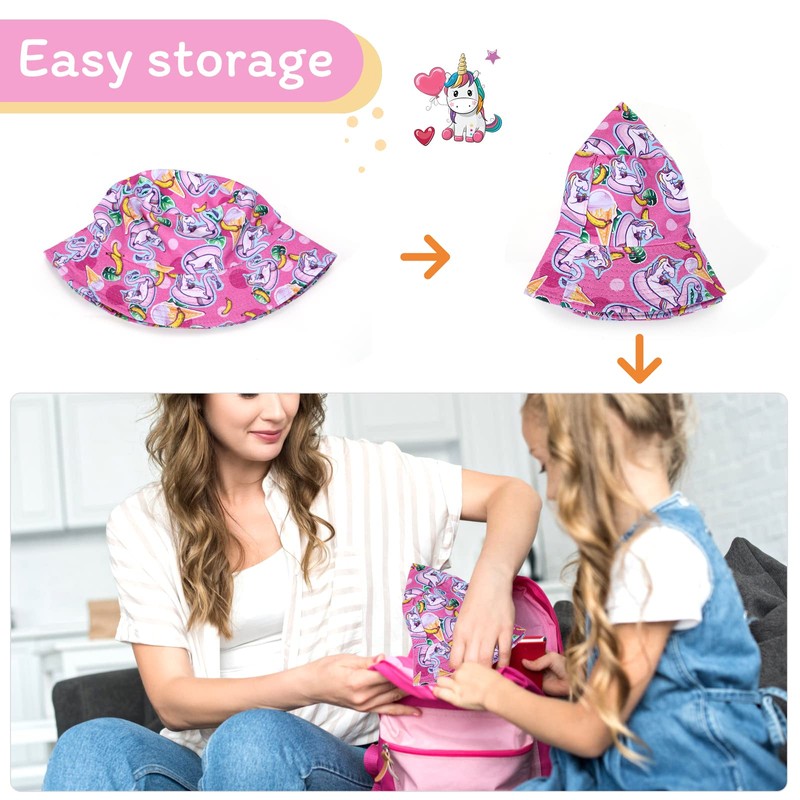 JUPSK Kid's Sun Hat, Children's Bucket Hat Unicorn Summer Hat Beach Courtyard Play Hat UV Protection Hat Soft Portable Foldable Cap Multicoloured