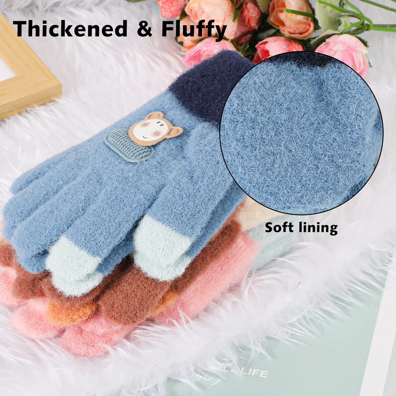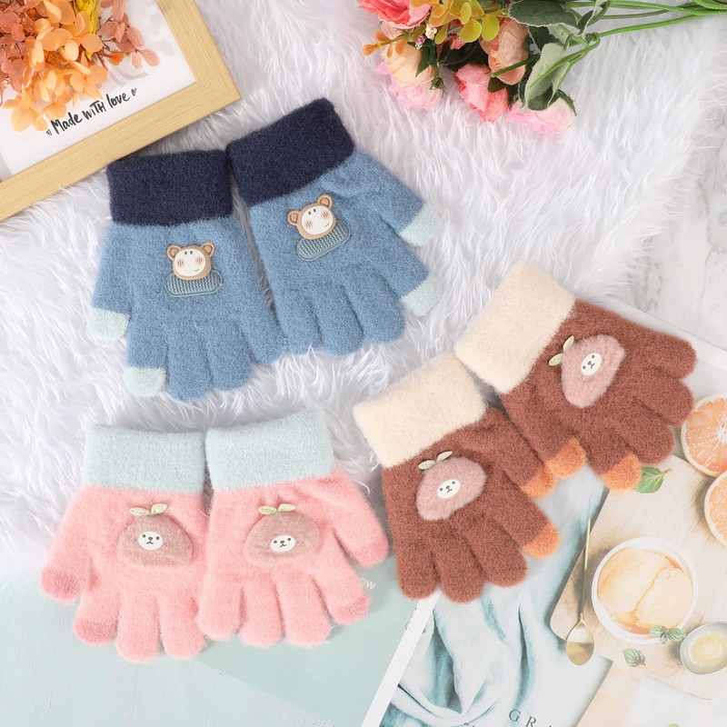 - Cute Gloves for girls: A set of plush knit gloves in pink, blue, brown featuring a cute animal pattern, looking gracefull and lovely. It is best for gift in Birthday, Christmas and Thanksgiving Day