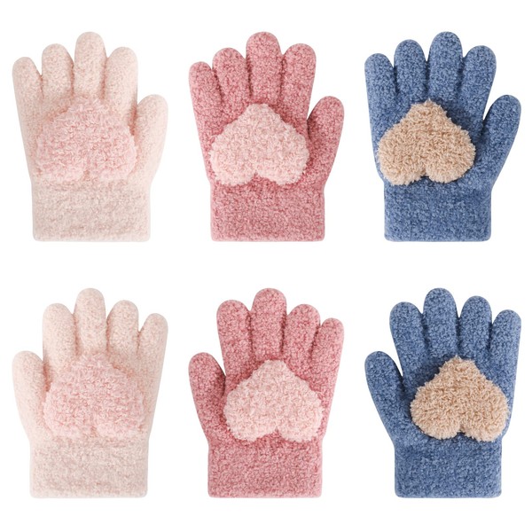 - Cute Gloves for girls: A set of plush knit gloves in pink, light pink and blue featuring a heart design, looking gracefull and lovely. It is best for gift in Birthday, Christmas and Thanksgiving Day.