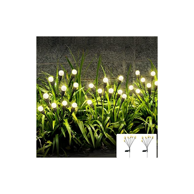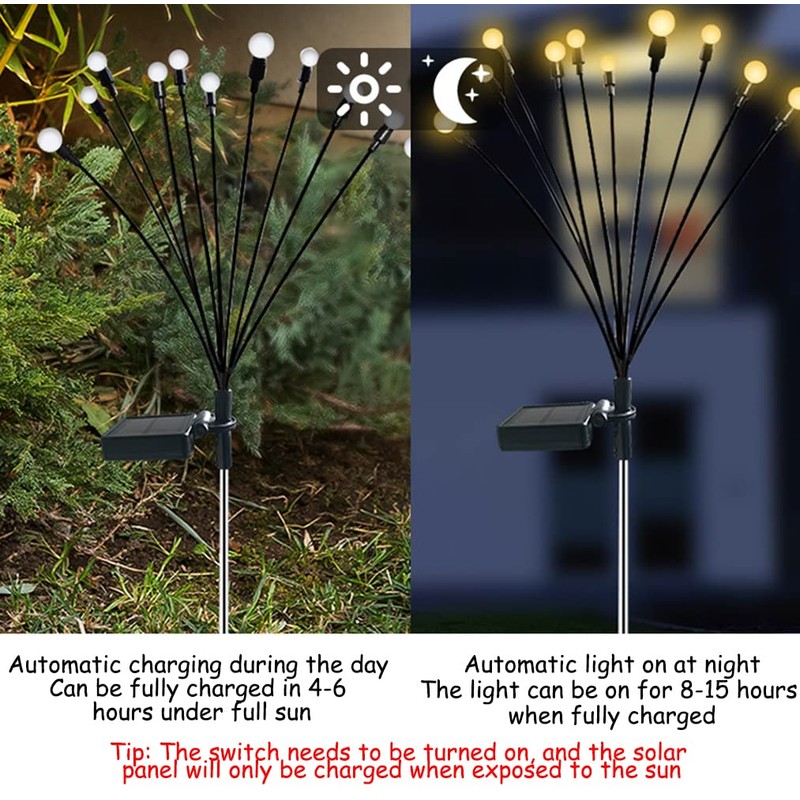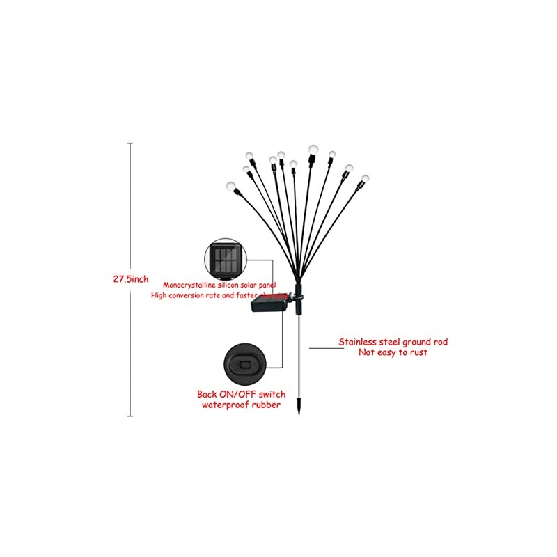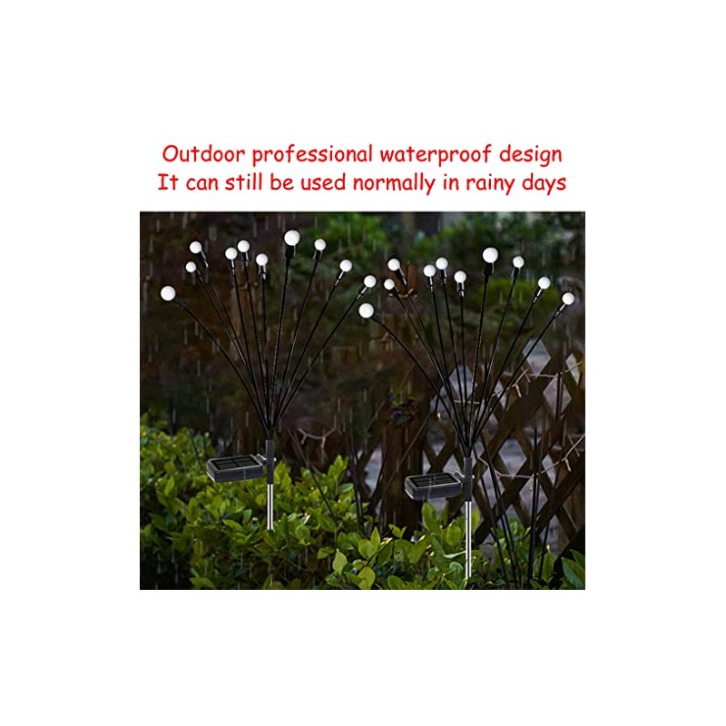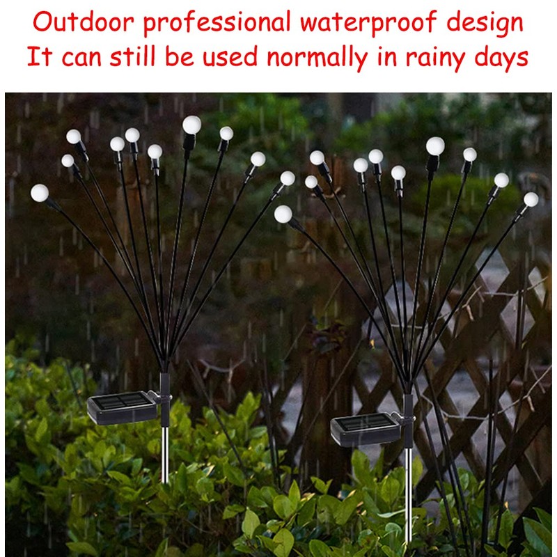 JURASNOW 2PCS 10 Head Solar Powered Firefly Lights, 10 LED Outdoor Waterproof Solar Starburst Swaying Garden Lights, Swaying When Wind Blows Solar Garden Lights Outdoor Decorative String Lights