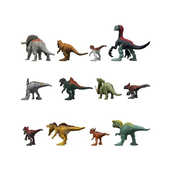¡Prepárate para la emoción de la aventura y la acción con Jurassic World: Dominion! ¡Estos mini dinos están inspirados en la película y vienen en cajas "sorpresa" para una divertida experiencia cuando abres la caja! Las cajas tienen 1 mini dino extragrande, 1 mini dino grande y 1 mini dino pequeño o 2 mini dinos medianos. Construida a una escala de 2.8 cm, la variedad de tamaños proporciona un auténtico juego de batalla con dinosaurios o de exhibición dramática. Los niños querrán coleccionar los distintos packs, ya que se incluyen los dinosaurios presentados en Jurassic World: Dominion, como el Therizinosaurus, el Giganotosaurus y el Atrociraptor! Cada dinosaurio tiene una forma realista y una decoración auténtica. Es un excelente regalo para los fans de los dinosaurios de 3 años en adelante.