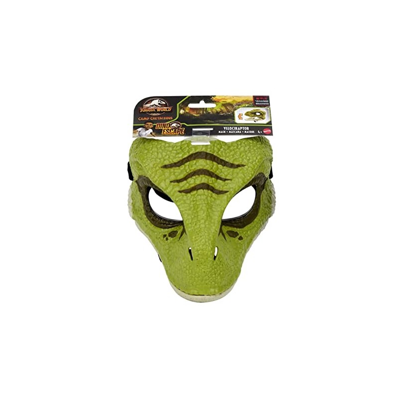 - Choose from the Tyrannosaurus Rex (green) or Velociraptor (beige and orange) masks and others to become your favorite Jurassic World dinosaur!